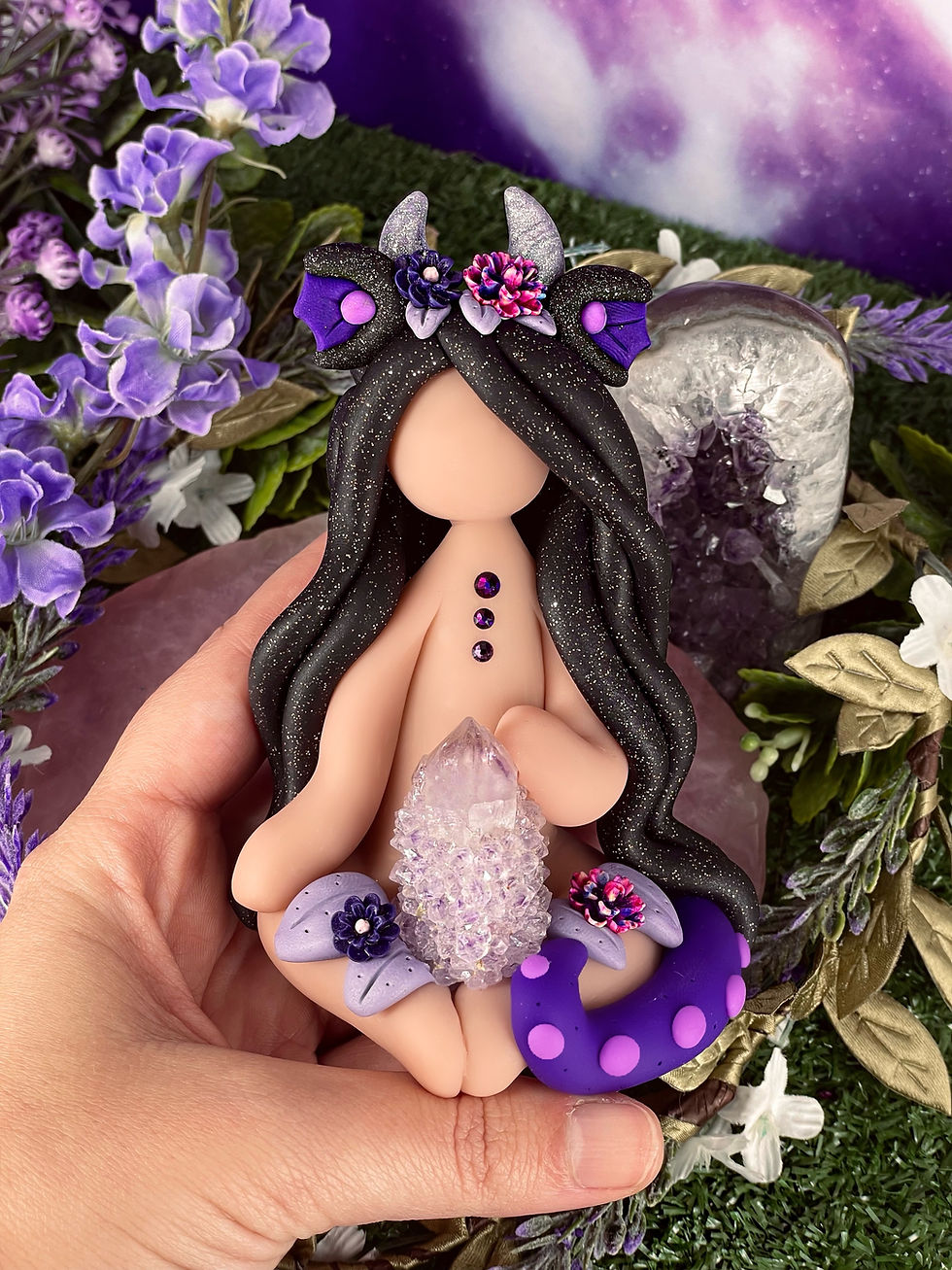 Each medium sized crystal Goddess is one of a kind and hand crafted with its own unique crystals.