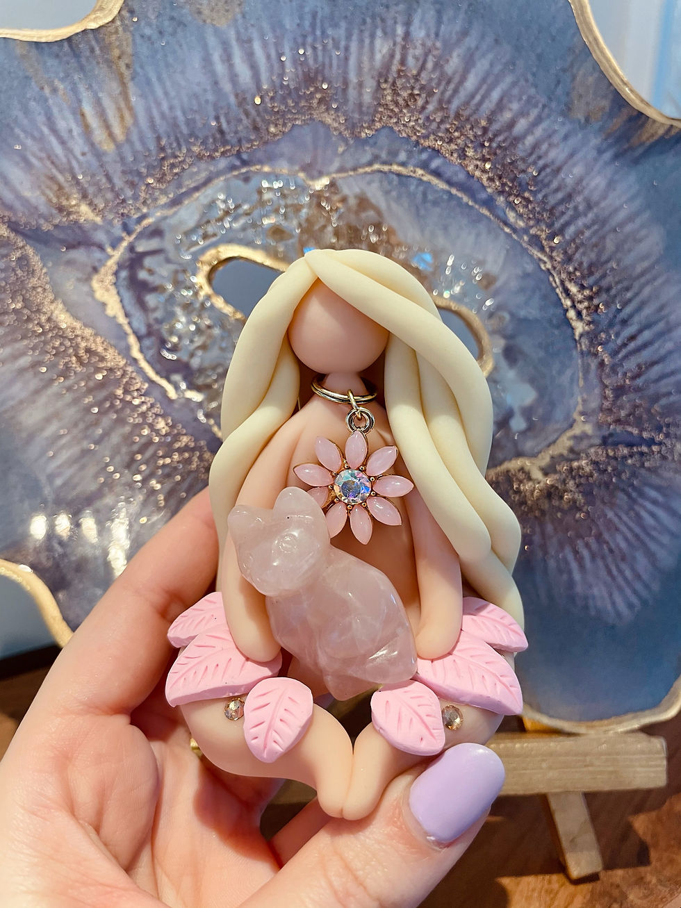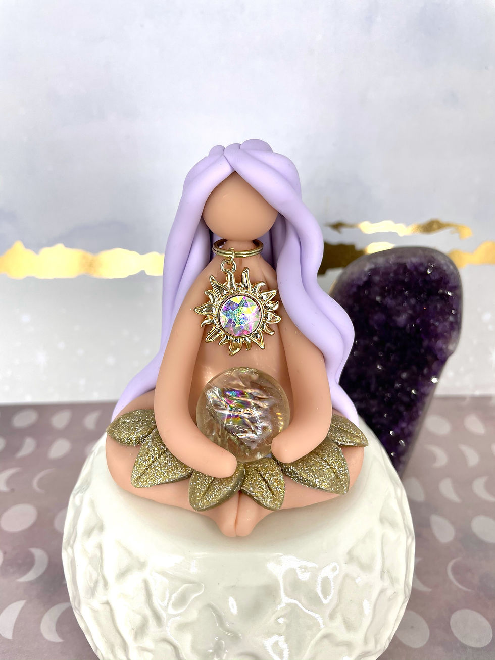 Each medium sized crystal Goddess is one of a kind and hand crafted with its own unique crystals.